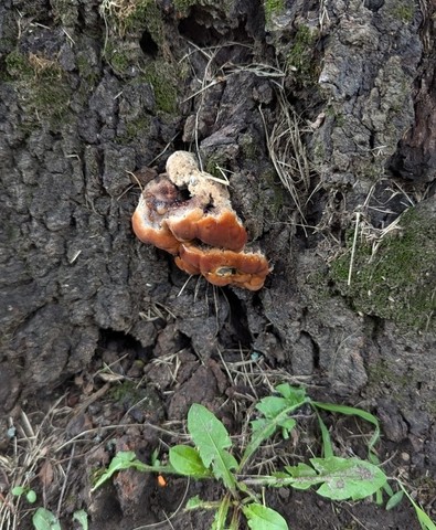 In close proximity to Trichaptum biforme and Fuscoporia gilva.